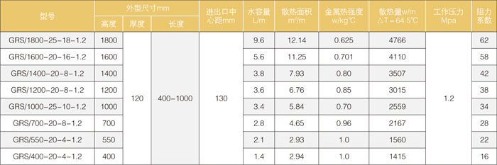 高頻焊翅片管暖氣片[下進下出]系列主要技術參數表