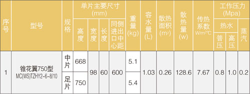 鑄鐵錐花翼750型暖氣片