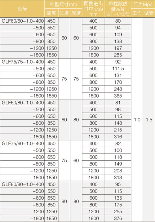鋼鋁復(fù)合暖氣片主要技術(shù)參數(shù)表